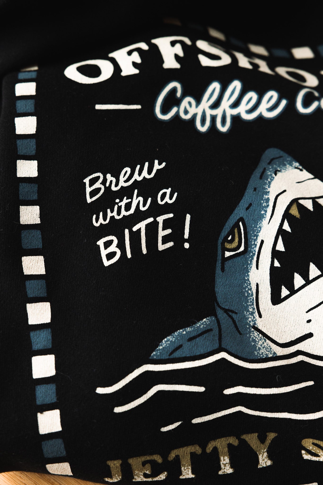 Cozy, durable, and limited edition. Our collab hoodie with Jetty Surf Co. features the “Brew With a Bite” design and comes in black or heather grey. Your new go-to layer for chilly morning coffee runs.